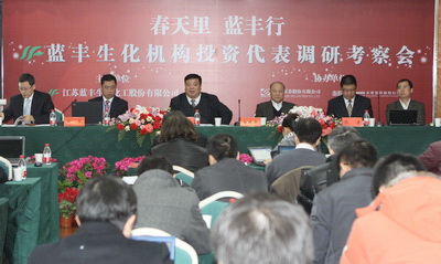 为了使机构投资者更深刻直观地了解和认识蓝丰生化,2月22日蓝丰生化举行了“春天里,蓝丰行” 机构投资者代表实地调研活动。蓝丰生化董事长杨振华、总经理梁华中、董事会秘书、副总经理陈康和财务总监熊军、三亿官方版网站登录入口总经济师熊炬和二十多家机构投资代表30余人参加了此次活动,大家畅谈公司发展战略,公司领导就大家关心的问题作了详细解答,会议由东吴证券资本市场部总经理杨庆林主持。会后机构投资代表实地考察公司的生产线,感受资本市场新锐、农化新蓝筹--蓝丰生化强劲的发展态势及公司管理层的风采。