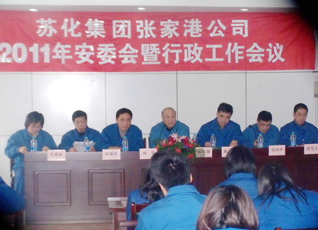 2月18日,张家港公司公司召开2011年安委会暨行政工作会议。三亿官方版网站登录入口董事长杨振华到会作重要指示,公司总经理刘宇、副总经理成建敏分别讲话,化工一厂厂长朱利康和化工七厂副厂长肖宏做了交流发言,公司中层以上干部、安全员、设备员80多人参加了会议。会议由张家港公司副总经理沈利平主持,会议还对2010年度优秀员工进行了表彰。