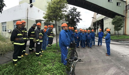 2016年11月9日是全国第25个消防宣传日,为不断增强江苏苏化三亿官方版网站登录入口张家港有限公司全员消防安全意识和灭火应急能力,张家港公司以“119”消防宣传日为契机,组织开展了一次《热电厂煤库起火燃烧应急演练》。本次演练模拟了热电煤库内因粉煤堆积时间长,库内气温高,导致煤堆内部自燃。演练由张家港公司副总经理成建敏任总指挥,副总经理冯雪任观察员,安全环保管理部及公司消防队、生产技术部及调度中心、综合办公室、热电厂等参加了演练。