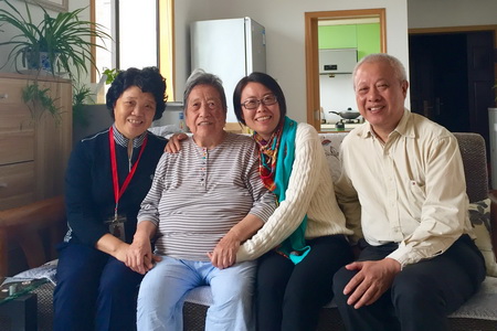离休干部李桂兰也是当年从青岛迁建苏州时进入苏化厂工作的,当年参加革命时还是个红小鬼的她今年已经90高龄了。他育有五朵金花,女儿是小棉袄,这话一点不错,女儿们个个对她都很好,随便那家都可以住的。现在她住在第二个女儿家里,二女儿家在胥口镇的一个有电梯的公寓里,离太湖不远,空气比城里好很多,她女儿说,妈住到这里后,基本没咳嗽过。令人称奇的是,90高龄的老人仍有一口整齐洁白的牙齿,也没有假牙,她说主要是小时候家里穷,记得到6岁还没吃过糖。老人的脑子很清楚,也很健谈,我们与她合了影,并祝她健康长寿。